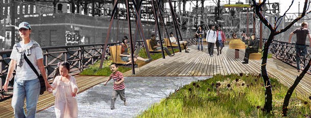 This idea has been welcomed enthusiastically by the community and, needless to say, is a huge improvement over the earlier plan that involved possible demolition of the viaduct.