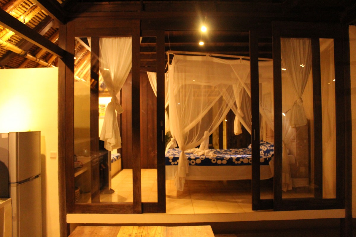 My bedroom had a small garden at the far end of the room, which took a little getting used to as it too was completely open to the elements. I wasn’t so much worried about lizards or small animals getting in, just spiders. Thankfully, my little gecko friends were around to keep the insect population in check. Mosquito nets enveloped each bed, and worked a treat – we had very few mossie bites between us by the end of the stay. There were one or two small holes, which could have easily been patched, but didn’t pose a problem during our stay.