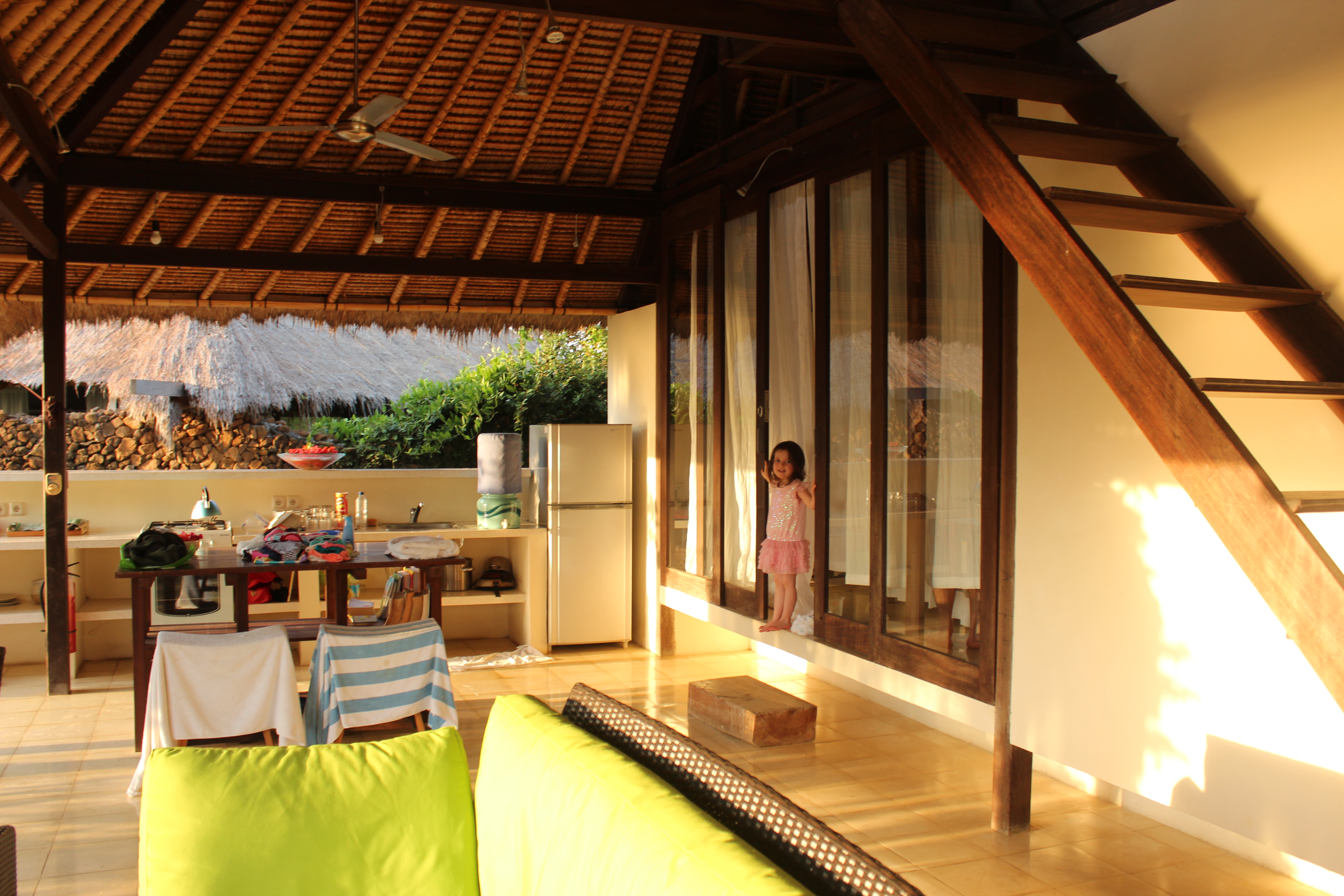 Turning my attention back to the villa, I tried to get my head around the architecture our new space. Challenging the Western norm of four walls and a roof, our living and dining area had no walls at all. It was entirely open to the elements.