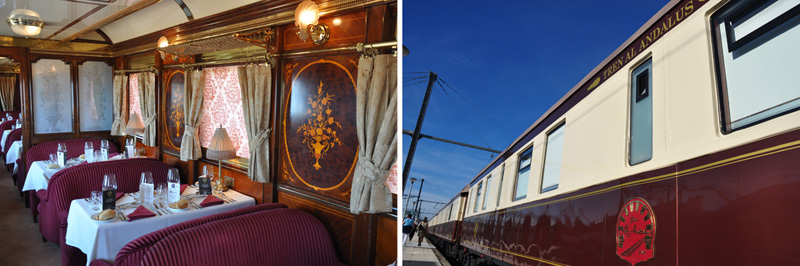 The Al-Andalus boasts two dining cars, the Alhambra and Gibralfaro, seven deluxe sleeping cars, five of which date back to the 1920s, and for those seeking light entertainment there are separate bar and games cars to while away the traditionally late nights. A buffet breakfast is served daily, two lunches during the trip and dinner every evening, accompanied with wonderful local wines.