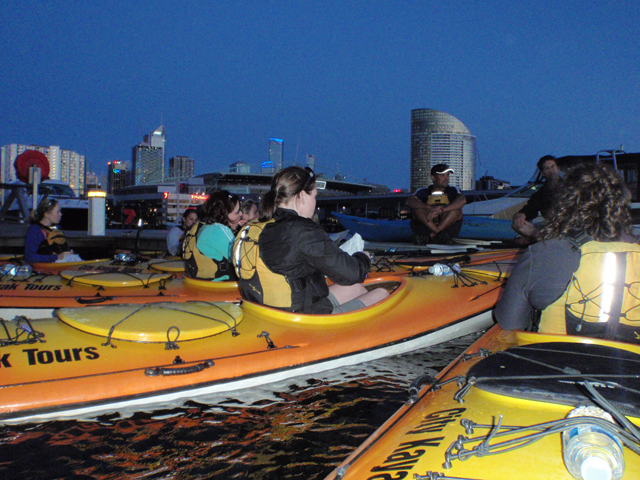 The evening tour I was booked on with Kayak Melbourne set off from the boat sheds at Docklands at 7pm sharp. It’s summer here, but it still gets dark early so you don’t have to wait too long to get a view of the cityscape at night.
