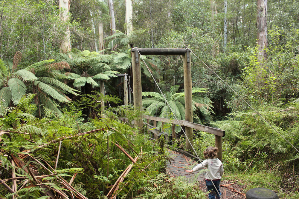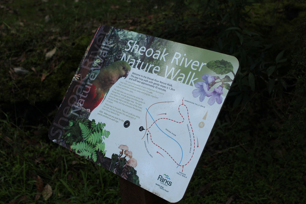 We’re exploring Sheoak River Nature Walk in the Otway Ranges up behind Lorne, on the Great Ocean Road. Well maintained walking tracks and a picnic area make it a popular with visitors to the area, but today it’s wet and cold so there are only a few people out here wandering about.