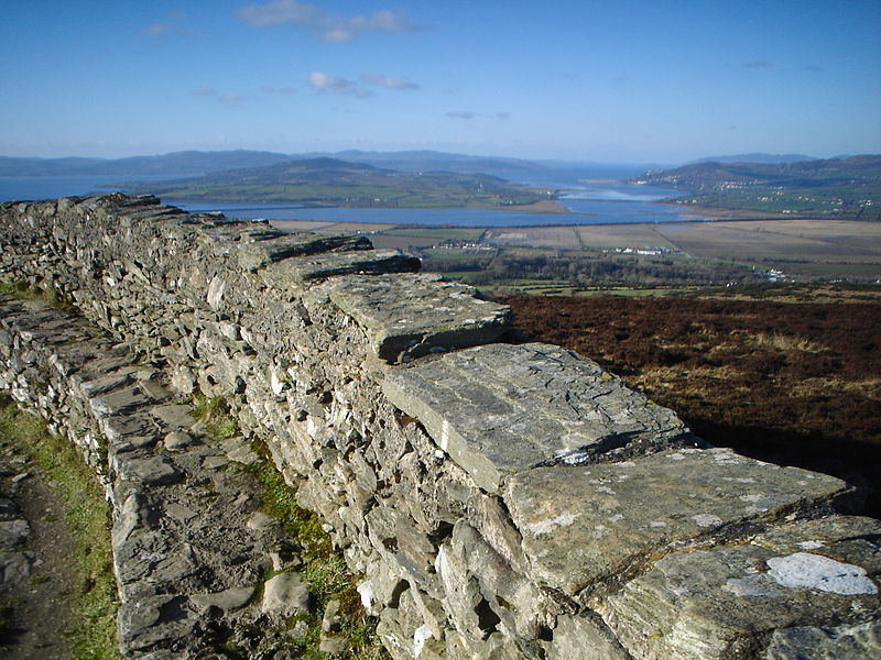 The stone walls of Grianán of Aileach, looking towards Muckish Mountain, near Creeshlough, Co. Donegal – where my family go way back.