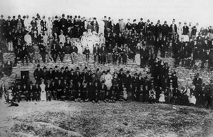 The official re-opening of Grianan Aileach in 1878 following the reconstruction of Dr. Walter Bernard. Original photo belongs to Bigger/McDonald Collection.