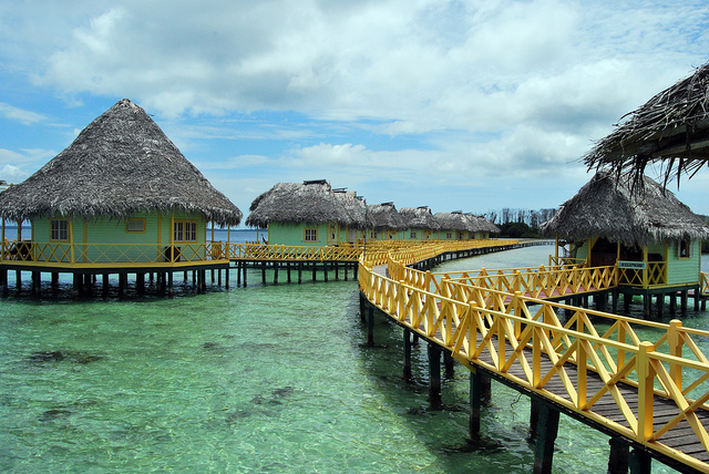 After having explored a tree-house resort, an island resort, and a jungle resort, let’s make our way to an aqua lodge. Punta Caracol, from a distance, looks like it is floating on water. On closer inspection you discover the cabins in this resort are suspended on stilts and balanced by a wooden frame.