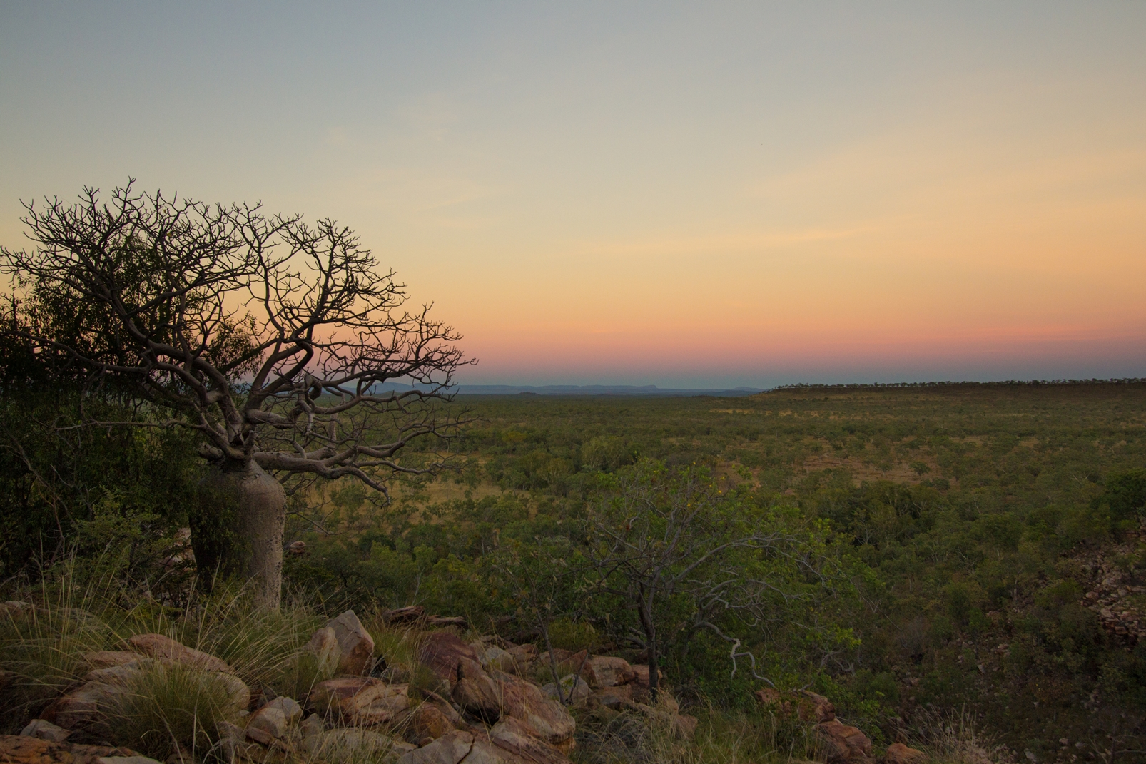 Mt. Barnett station campsites. Camp under an ancient Boab tree with a thick, blanket of stars overhead. In the morning, rise with the Black Cockatoos’ calling each other at sunrise and spot a wallaby or wallaroo hopping through the tall brush near your tent.