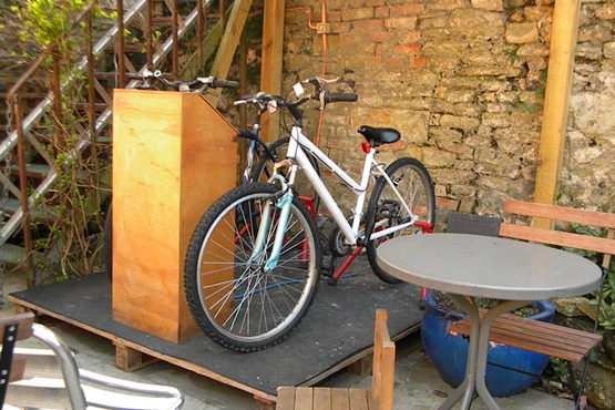 Lights circumnavigate the garden but can only be turned on if someone has taken the time to ride the bicycle that charges the batteries that power the lights. No patio heaters are used because of their wasteful nature, with hot water bottles and blankets the only accomplices offered on chillier days.