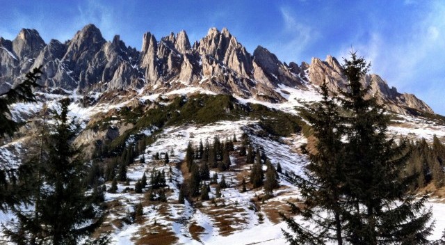 Our small group is pushing steadily uphill from the Berghotel Arthurhaus, through the dark trees and breaking through onto a wide plateau. We are always overlooked by the magnificent crown of the Hochkönig mountain range.