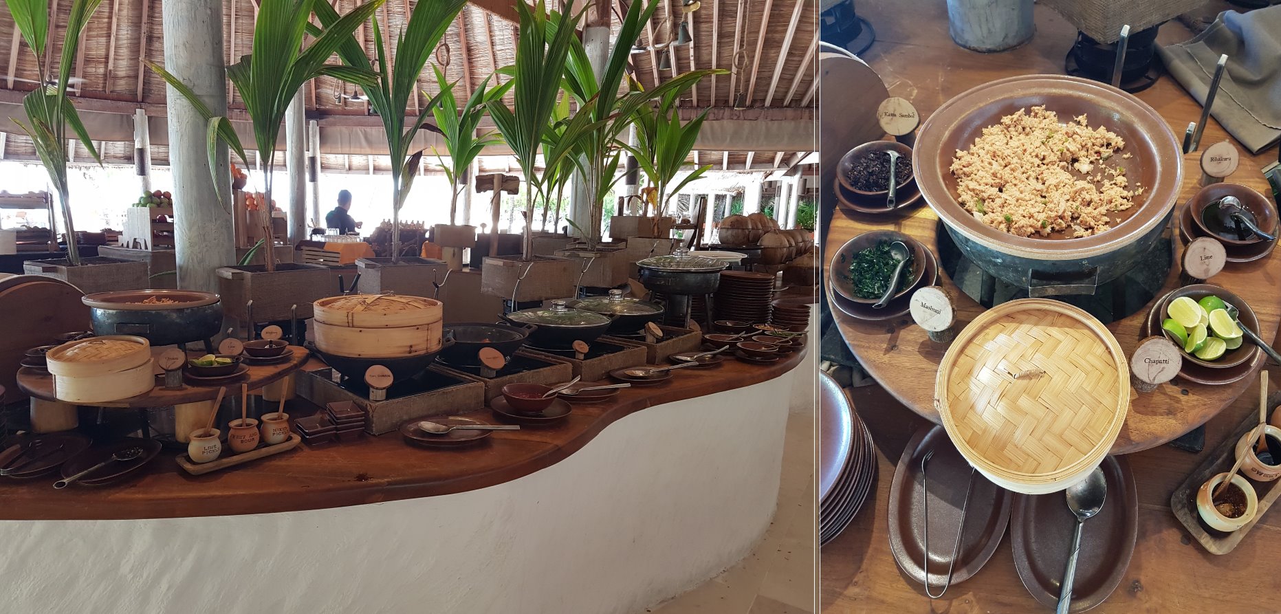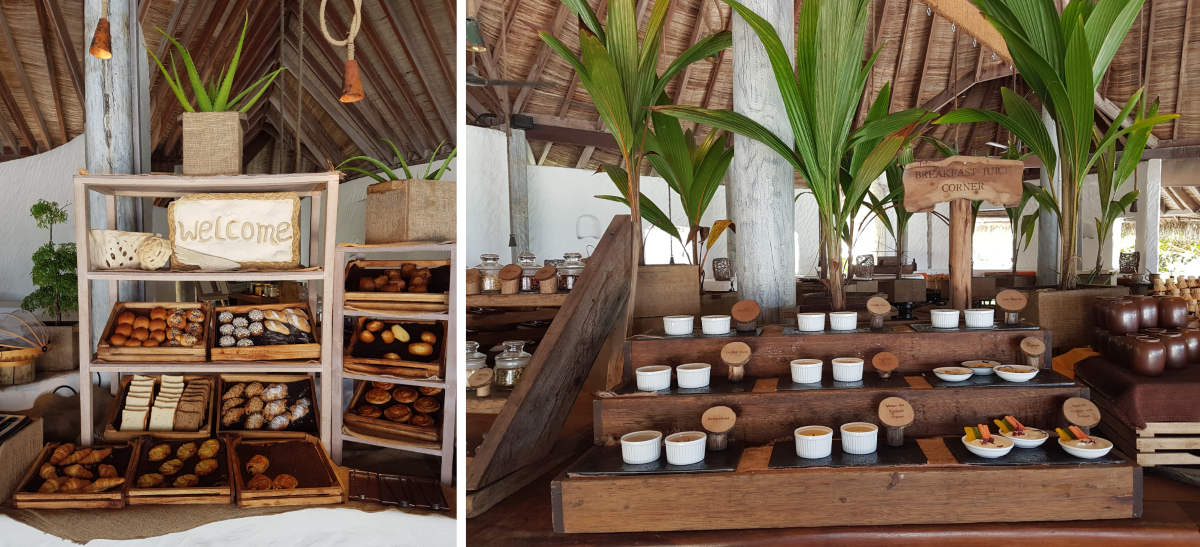 The bread, pastries, jams and juices are made fresh on the island every day. There is a cooked menu to choose from offering eggs cooked your way, omelettes and Maldivian traditional dishes. A classic Maldivian breakfast is tuna mixed with onion and capsicums which is then wrapped in a roti smeared with a spicy fish paste. It is completely addictive.