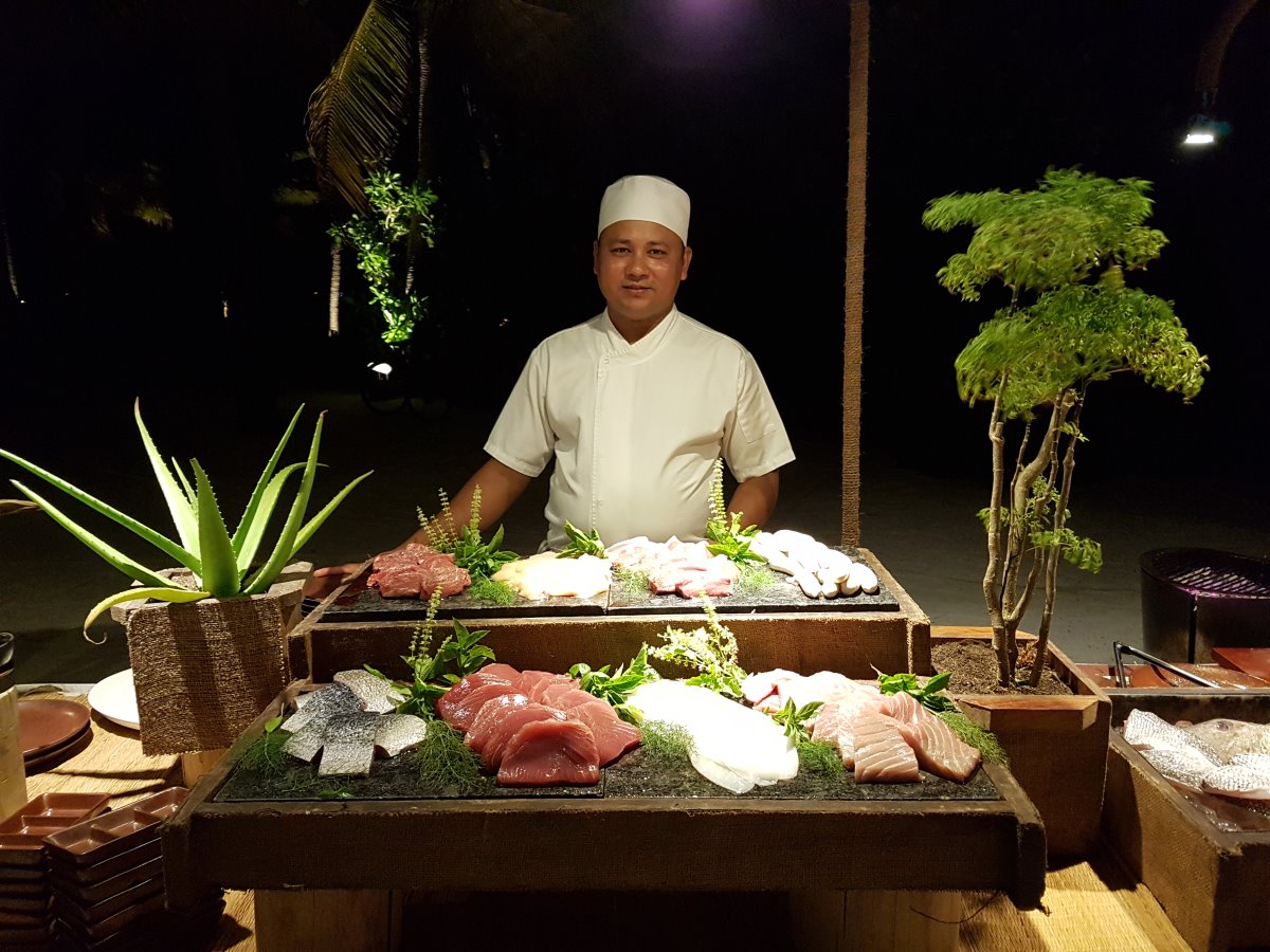 I’m usually greeted by Rifaque, a cheery Maldivian with a wide smile and bright eyes. He talks me through the offerings at the salad bar and allows me to choose any table.