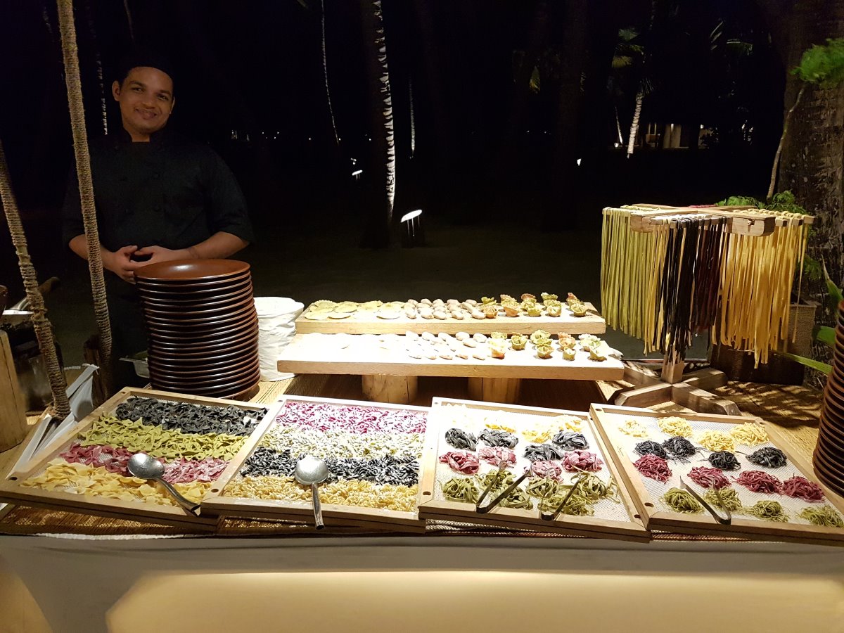 The menu is varied with a lot of fish options given the locale – each day’s catch comes fresh from neighbouring Himmafushi Island. The salad bar offers a great selection of greens, vegetables, cold meats and condiments. The oils and jams are made here on the island and most of the produce available from the salad bar is grown in the kitchen garden.