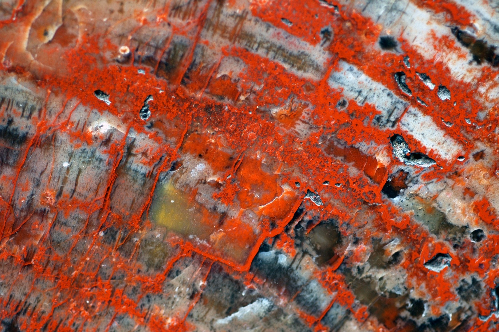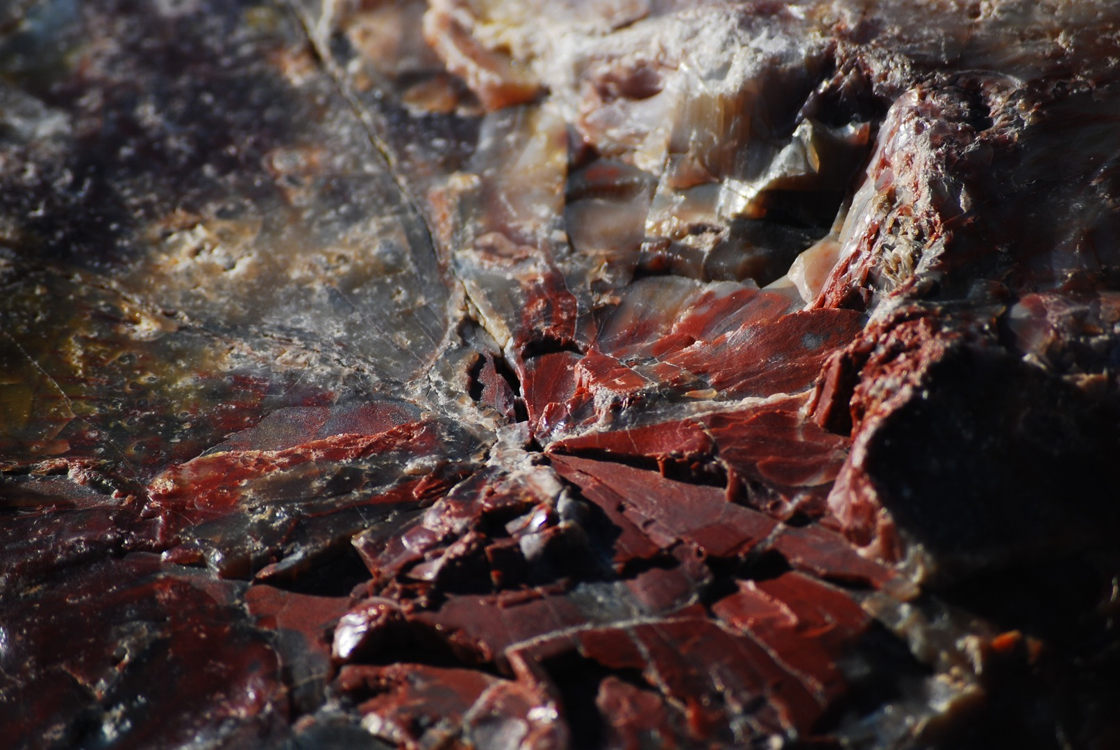 The beautiful color schemes of petrified wood reveal the chemistry of the petrifying groundwater. Manganese, copper and iron in the water or mud during the petrification process give the wood a combination of different color ranges.