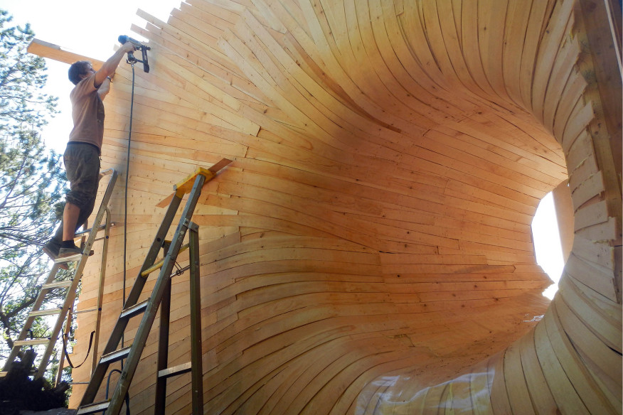 Created by students from the Bergen School of Architecture at a design-and-build workshop, Tubakuba is the student’s solution to getting more children into the wild Norwegian woods. Led by architect Espen Folgerø, the workshop encouraged students to get hands on experience on what works and what doesn’t in sustainable architecture when put into practice. In this case, the students built a scale model of the structure at the school of architecture and then recreated it onsite.