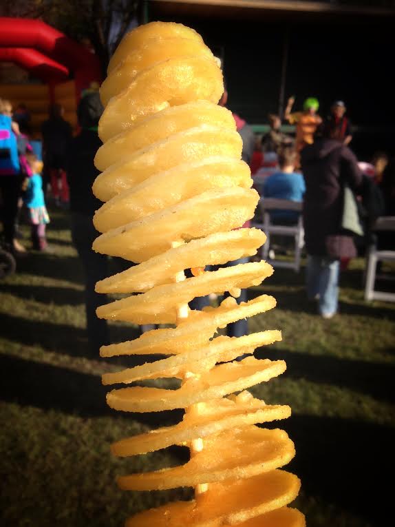 Burly farmers and festival crew in neon vests wait in line for their tea and scones with cream and jam, nattering with the ladies from the Lion’s Club who’ve helped organise the day. We buy fried potato spirals on a stick – a Korean creation that would be a big winner in Ireland. There’s a huge untapped market there for this tasty treat. I go back for more. Twice.