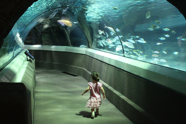The Ocean Walk Through experience is a great opportunity to see marine life up close and personal if diving isn’t your thing, but it was a bit too scary for my four- and two-year-old daughters. The touch-tank and the Finding Nemo section, where the fish species that appear in the movie of the same name are displayed, held their attention for about five minutes, but they seemed to be more interested in running up and down the long ramps between floors!