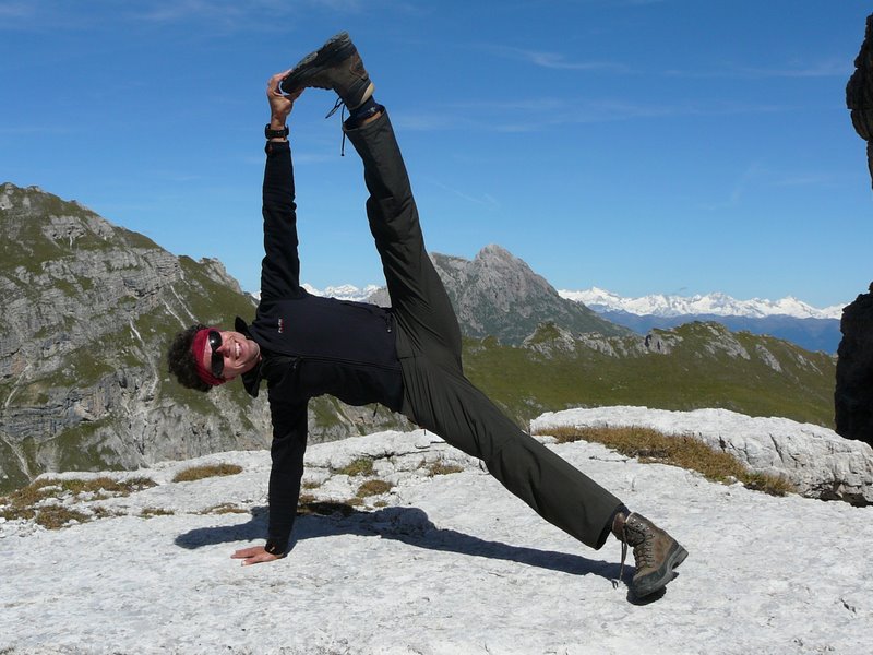 Egon Castlunger stretching out in the Dolomites. Image: via Dolomite Mountains.